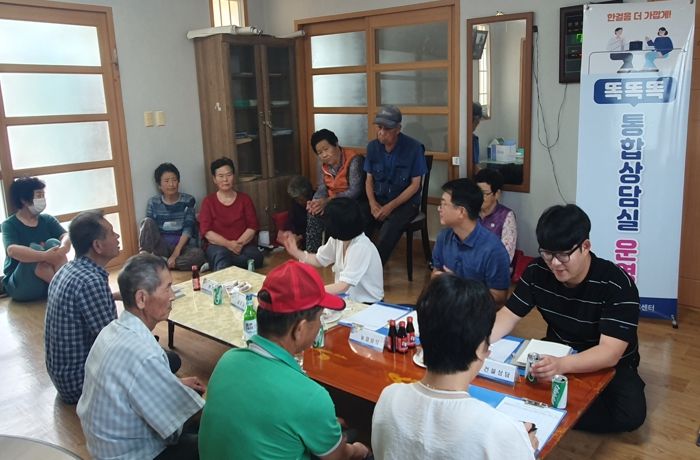 통합상담실은 행정복지센터에 방문이 어려운 지역주민들을 위해 월 1회 마을별로 경로당 및 마을회관에 상담실을 마련하고 민원 사항 청취 및 주요 현안 사업을 홍보하는 사업이다. 주민들을 직접 만나고 불편사항을 경청하는 등 현장 행정을 구현하고 있다.