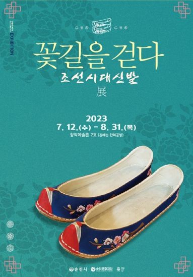 조선시대 신발 ‘꽃길을 걷다’ 전시는 창작예술촌 2호 김혜순 한복공방(순천시 옥천길 26)에서 수~일요일 10~19시까지 운영되며 관람은 무료이다.