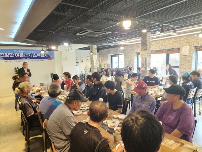 매년 초복 시즌에 진행하는 ‘건강한 여름나기 행사’는 안성맞춤지역자활센터의 자활근로사업에 참여하고 있는 전체 주민들의 건강을 위한 보양식(삼계탕)을 제공하여 사기진작과 근로능력향상을 위한 소통의 장을 마련하고자 행사를 진행하고 있으며 작년에 이어 올해도 안성경옥당한의원·KB국민은행 안성지점의 후원으로 안성맞춤지역자활센터 자활근로사업 참여자 및 실무자 75명이 참여한 가운데 행사를 진행했다.