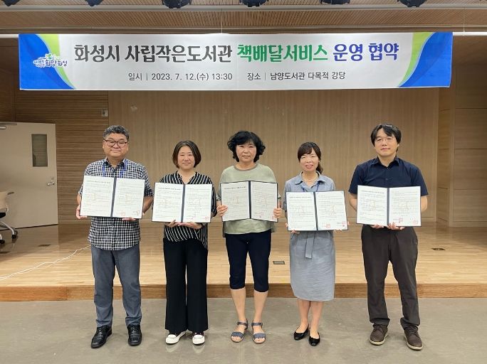 [제주교통복지신문 김강석 기자] 화성시가 12일 사립작은도서관 5개와 책배달서비스 운영 업무 협약을 체결했다.