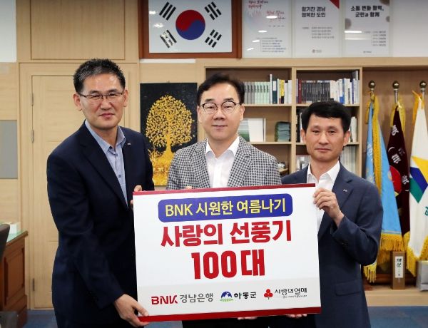 [제주교통복지신문 김강석 기자] 하동군은 BNK경남은행 하동지점(지점장 황재원)이 13일 군수 집무실을 찾아 지역 소외계층에 전해 달라며 한여름 필수품인 선풍기 100대(290만원 상당)를 기탁했다고 밝혔다.