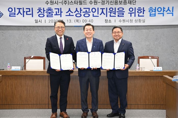 [제주교통복지신문 김강석 기자] 수원시가 ㈜스타필드 수원, 경기신용보증재단과 협력해 일자리를 창출하고 소상공인을 지원한다.
