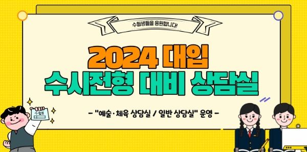 이번 대입 수시전형 대비 집중 상담실은 ▲일반 상담과 ▲예술ㆍ체육 상담으로 나눠 운영되며, 대구 진학전문교사들이 상담위원으로 참여한다.