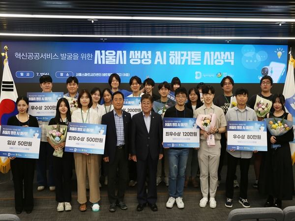 [제주교통복지신문 김강석 기자] 서울디지털재단과 서울특별시 120다산콜재단은 7월 12일 서울스마트시티센터에서 ‘서울시 생성AI 해커톤’ 본선대회를 개최하여 총 8개 팀(상금 1,260만원)을 시상했다. 이 대회는 GPT 등 생성 AI 기술을 활용한 공공서비스 개선 아이디어를 시민이 직접 기획・개발하는 대회이다.