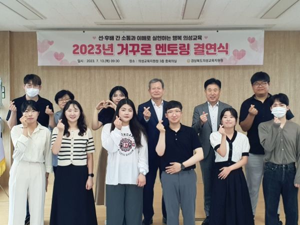 의성교육지원청의 거꾸로 멘토링은 후배 공무원 9명의 멘토와 선배 공무원인 교육장 및 부서장 등 3명의 멘티로 구성됐다. 결연식은 등록 및 거꾸로 멘토링 운영 계획 안내, 멘토-멘티 대표자 인사말, 조별 협의 순으로 진행됐으며 앞으로 매 홀수달 정기 멘토링을 진행하여 조별로 소통하는 시간을 가질 예정이다.