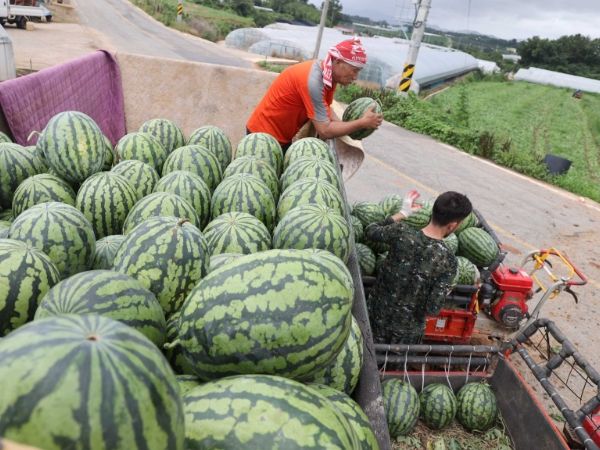 [제주교통복지신문 김강석 기자] 7월 13일 새벽, 전남 영암군 도포면 구학리에서 황토 수박 출하가 한창이다.