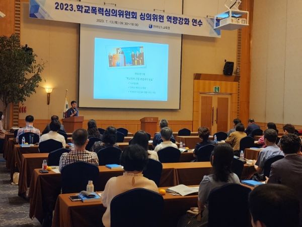 [제주교통복지신문 김강석 기자] 전라남도교육청은 7월 13일 호텔현대 바이라한 목포에서 ‘학교폭력대책 심의위원 역량 강화 연수’를 열어 학교폭력 관련 불복 사례를 줄이고, 피해자들의 빠른 회복을 지원하기 위한 지혜를 모았다.