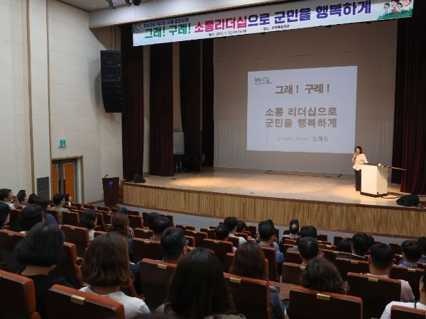 군은 임혜자 건국대학교 행정대학원 겸임교수를 초빙해 서로 다른 세대가 소통하고 공감할 수 있는 리더십에 대해 살펴보고, 현시대가 요구하는 리더십의 유형 및 계발을 통해 진정으로 소통하는 방법이 무엇인지 알아가는 자리를 마련했다.