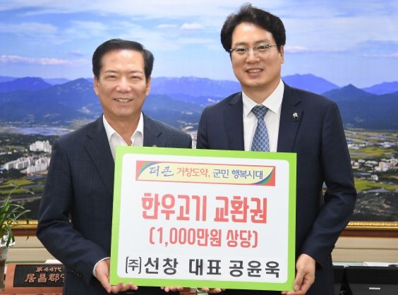 ㈜선창에서 기탁한 한우 교환권은 관내 홀몸 어르신, 저소득 한부모가정, 조손가정 등에 배부될 예정이며, 기탁식에 참석한 공윤욱 대표는 “더위에 취약한 어르신들과 아이들이 한우를 드시고 건강하게 여름을 잘 이겨내시면 좋겠다”라고 말했다.