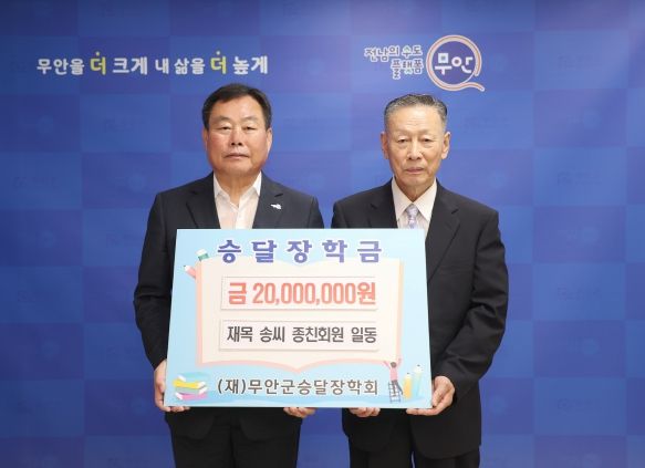 [제주교통복지신문 김강석 기자] 전남 무안군은 지난 13일 재목 송씨종친회가 (재)무안군승달장학회에 장학금 2,000만 원을 기탁했다고 밝혔다.