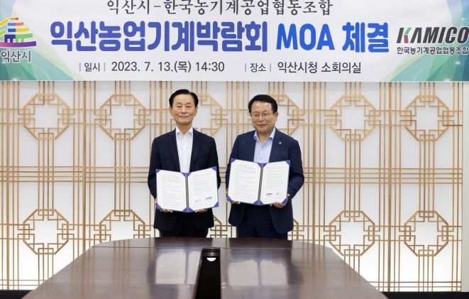 [제주교통복지신문 김강석 기자] 익산시는 13일 정헌율 시장과 김신길 한국농기계공업협동조합 이사장이 참석한 가운데 익산농업기계박람회의 성공적 추진을 위한 합의각서(MOA)를 체결했다.