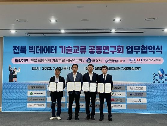 이날 업무협약은 우석대학교 LINC 3.0 사업단, 한국전자통신연구원 호남권연구센터와 함께 이뤄졌으며,‘전북 빅데이터 기술교류 공동연구회’의 활동에 동참하기로 했다.