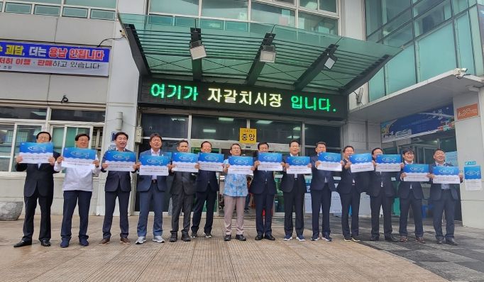 월례회를 마치고 부산의 대표 수산시장인 자갈치시장을 방문하여 ‘꼼꼼검사 촘촘감시’핸드피켓을 들고 구호를 외치며 상인들을 격려했고, 인근 횟집에서 식사를 하는 등 수산물 소비에도 앞장섰다.