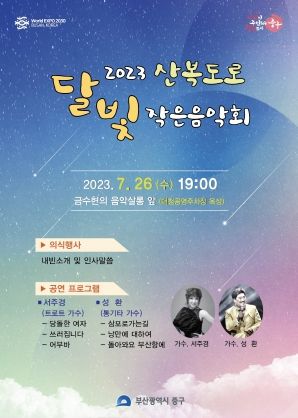[제주교통복지신문 김강석 기자] 부산 중구는 오는 26일 저녁 7시 금수현의 음악살롱 앞(대청공영주차장 옥상)에서 『2023 산복도로 달빛 작은음악회』를 개최한다.