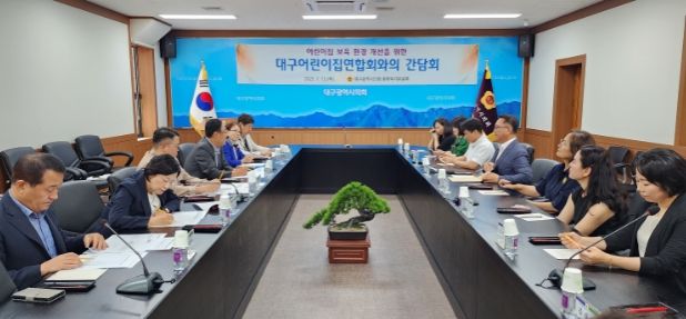 [제주교통복지신문 김강석 기자] 대구시의회 문화복지위원회(위원장 김재우)는 7월 13일 오후 4시 시의회 2층 간담회장에서 대구어린이집 연합회장 등 관계자 9명, 대구시 출산보육과장 등이 참석한 가운데 지역 어린이집 보육 환경 개선을 위한 주요 현안과 애로사항을 청취하고 개선 방안을 논의하는 시간을 가졌다.