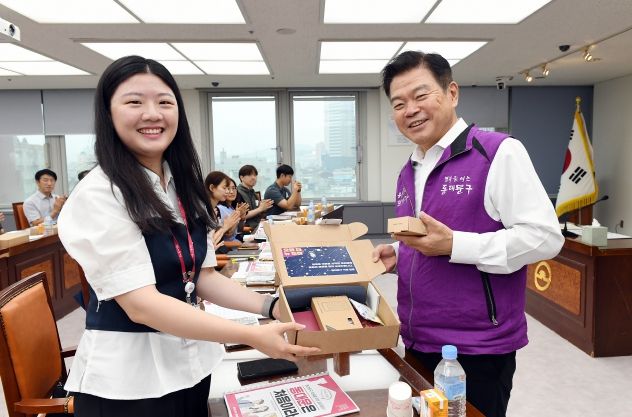 ‘행복을 여는 동대문구’라는 슬로건에 따라, 공무원으로서의 새로운 삶의 문을 여는 새내기 공무원들을 응원하는 웰컴키트도 제공했다. ‘오픈 더 뉴 도어’라는 이름의 웰컴키트에는 효율적인 업무추진에 필요한 용품들이 담겨있다.