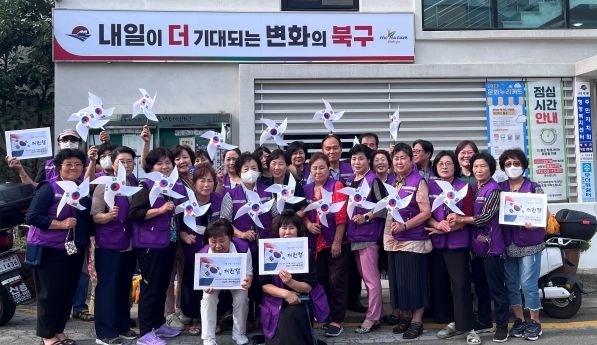 구포1동 통장연합회와 직원 등 25여명은 행정복지센터를 방문하는 주민들에게 태극기 게양의 올바른 방법과 관리법을 알려주고, 바람개비 태극기과 손 피켓을 이용하여 나라사랑 태극기 달기 운동에 대한 주민들의 동참을 유도했다.