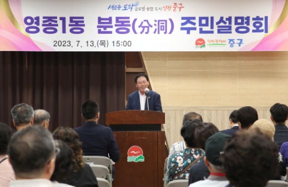 이날 주민설명회에는 중구의회 강후공 의장을 비롯해 이종호 운영총무위원장, 한창한 도시정책위원장, 윤효화 의원, 김광호 의원, 김정헌 중구청장 및 관계자 등이 참석했다.
