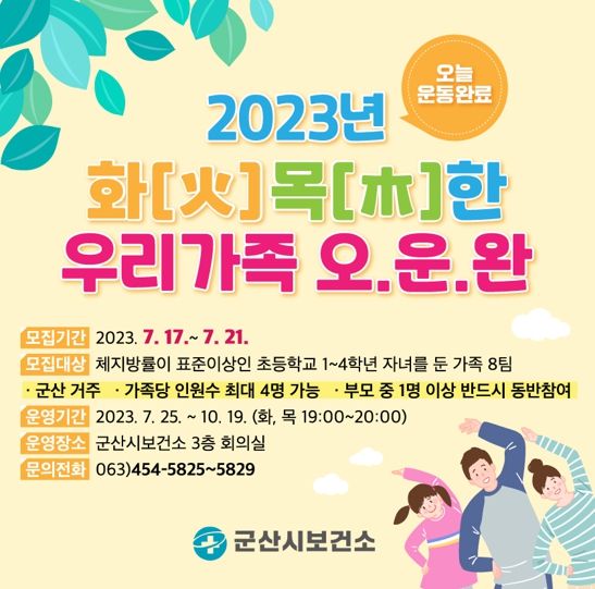 ![군산시, 2023년 화[火]목[木]한 우리가족 오..운.완 대상자 모집](/data/photos/portnews/202307/20230714085609-23240.jpg)