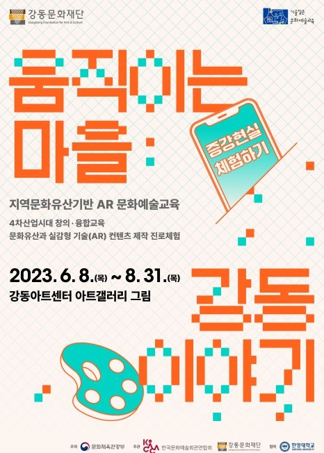 ‘움직이는 마을: 강동 이야기’는 초등학생, 중학생을 대상으로 증강현실(AR) 예술 콘텐츠를 직접 개발하고 제작할 수 있도록 한양대학교 응용미술교육과와 협력하여 기획된 교육 프로그램이다. 지역 문화유산 기반의 스토리텔링 콘텐츠를 바탕으로 한 AR 과학기술 진로체험을 통해 창의‧융합 교육이 중요한 4차 산업시대에 걸맞는 STEAM형(▲과학(Science) ▲기술(Technology) ▲공학(Engineering) ▲인문·예술(Arts) ▲수학(Mathematics)) 인재로 성장할 수 있도록 도울 예정이다.
