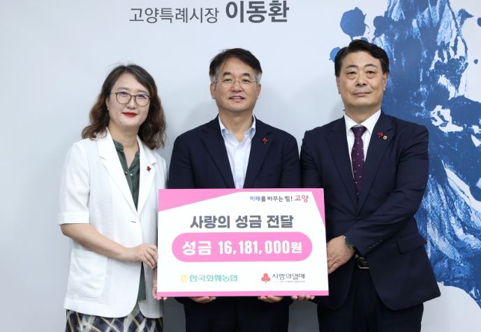 [제주교통복지신문 김강석 기자] 고양특례시는 지난 13일 한국화훼농협으로부터 1,600만원의 농촌사랑기금을 기탁 받아 경기사회복지공동모금회에 전달했다고 밝혔다.