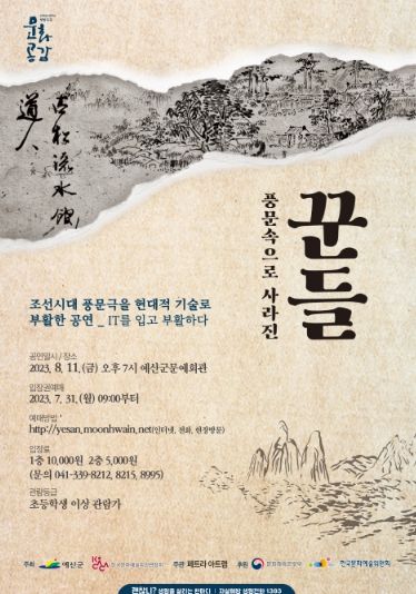 [제주교통복지신문 김강석 기자] 예산군문예회관은 2023년 한국문화예술회관연합회 공모사업 ‘방방곡곡 문화공감사업’ 선정된 5개 작품 중 올해 2번째 작품인 ‘풍문 속으로 사라진 꾼들’ 공연을 오는 8월 11일 오후 7시에 문예회관 공연장에서 개최한다.