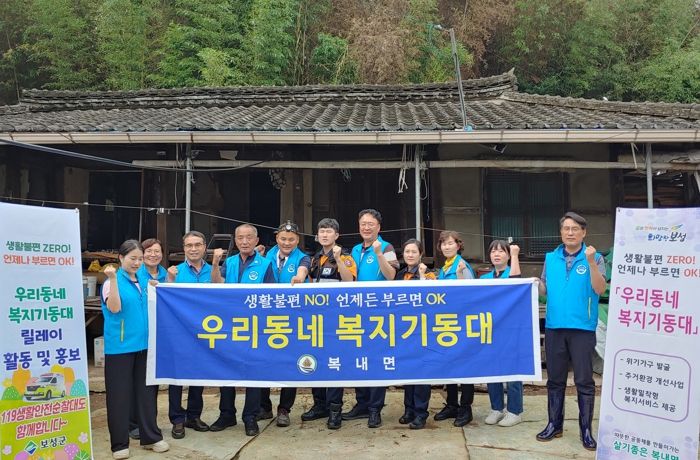 박근정 복내면장은 “봉사에 참여해준 복지기동대원 분들과 생활안전순찰대원들 모두 감사하다.”라며 “복지사각지대 발굴과 취약계층 생활 불편 제로화, 맞춤형 복지 서비스 제공에 최선을 다하겠다.”라고 전했다.