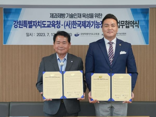 [제주교통복지신문 김강석 기자] 강원특별자치도교육청은 13일 도교육청 접견실에서 한국제과기능장협회와 ‘제과제빵 기술인재 육성을 위한 업무협약식’을 개최했다.