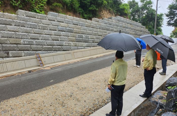 이날 이종규 금산부군수를 비롯해 군청 건설교통과 공무원, 건설현장 대리인 등 10여 명은 용화리 일원 급경사지 붕괴위험지역 정비사업장, 수통~방우간 연결도로 개설공사 등 건설 현장을 찾아 현장을 살피고 대응 방안을 논의했다.