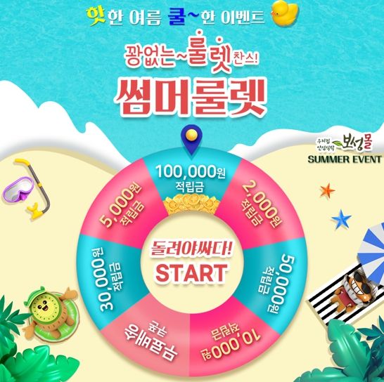 이번 행사는 100% 당첨 룰렛 이벤트이며, 회원들은 1회 한정으로 무료배송부터 최소 2천 원에서 최대 10만 원까지 당첨이 가능한 룰렛을 돌릴 수 있다. 당첨금은 보성몰 전 제품을 구입할 수 있는 적립금 형태로 제공된다.
