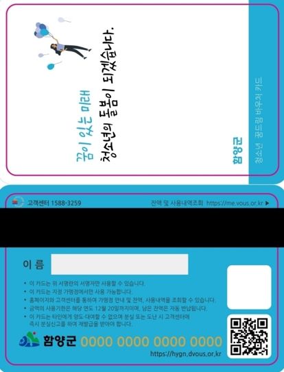 진병영 함양군수는 “민선8기 공약인 청소년 꿈드림 바우처지원사업을 계획대로 시행할 수 있게 돼 기쁘다”며 “청소년 문화·취미활동 지원, 학부모 양육 부담 경감과 더불어 지역경제 활성화에도 도움이 될 것으로 기대한다”고 말했다.