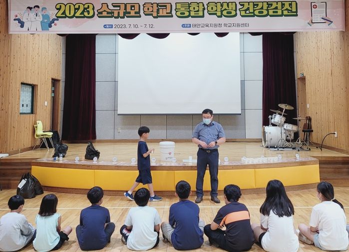 이에 태안교육지원청 학교지원센터는 홍성의료원과 업무협조를 통해 소규모학교 통합 건강검진을 2022년 시범 추진했고, 올해는 16교 597명의 학생을 대상으로 확대됐다. 이번에 우선 검진한 11교 444명의 학생이 아닌, 5교 153명 학생에 대한 검진은 2학기에 추진할 예정이다.