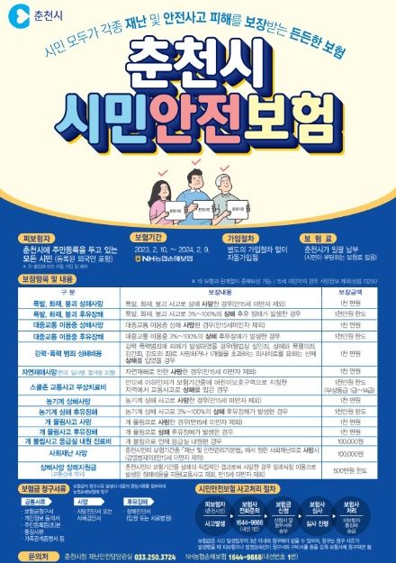 한편 시에 따르면 2020년부터 지금까지 춘천시민 34명에게 총 2억3,972만원의 보험금을 지급했다.