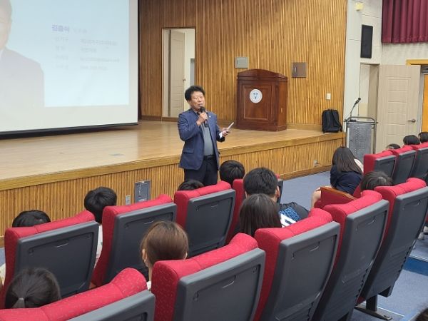 [제주교통복지신문 김강석 기자] 세종특별자치시의회 김충식 부의장은 14일 교동초를 방문해 4학년 학생을 대상으로 찾아가는 의회 교실을 진행했다.