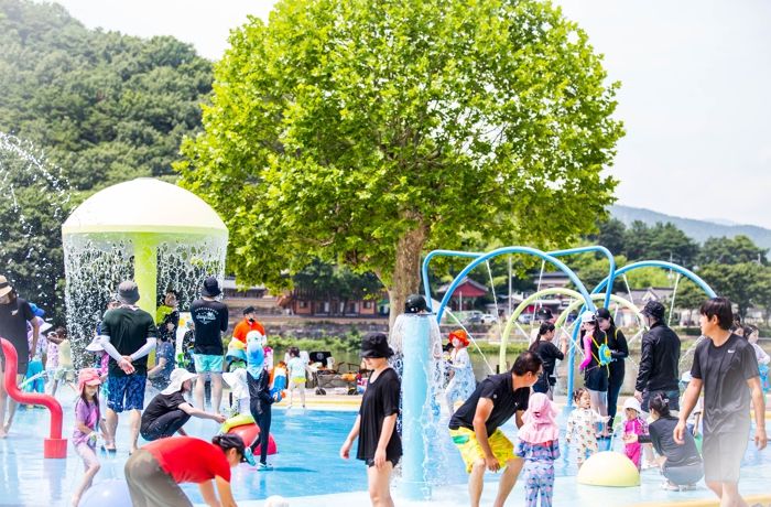나무그늘 아래 축제장을 가로질러 흐르는 실개천(계류시설)에 아이들이 발을 담그고 앉아 놀기에 안성맞춤이다. 물안개가 나오는 쿨링포그도 설치돼 색다른 재미를 준다.