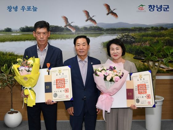 이날 수여식에서 공무원으로 재직 중 공‧사 생활에 흠결이 없고 지역사회 발전에 기여한 공적을 인정받은 김민수 전 부곡부면장과 남순호 전 효정보건진료소장이 각각 근정포장을 받았다.