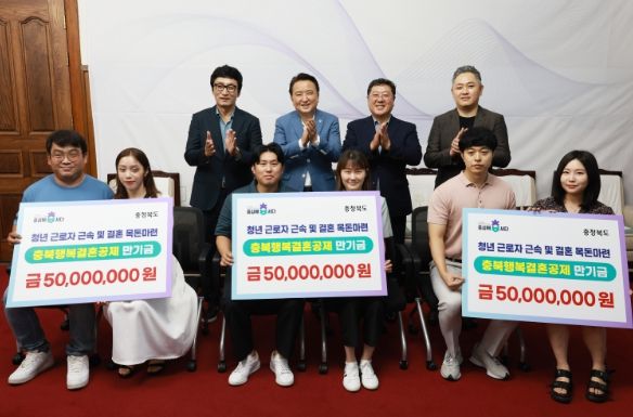 [제주교통복지신문 김강석 기자] 충북도는 14일 도청 여는 마당에서 기업체 대표, 청년 근로자와 배우자가 참석한 가운데 충북 행복결혼공제사업 첫 만기금 수령을 기념하는 행사를 개최했다.