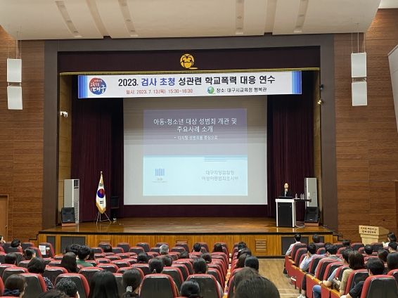 [제주교통복지신문 김강석 기자] 대구시교육청은 관내 학교 생활교육부장교사 300여 명을 대상으로 7월 13일 15:30 시교육청 행복관에서 ‘검사 초청 디지털 성폭력ㆍ학교폭력 대응역량 강화 연수’를 실시했다.