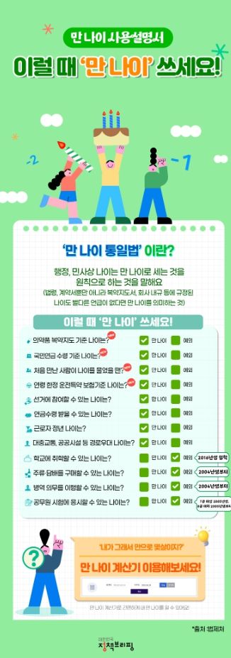 [제주교통복지신문 김강석 기자] 지난 6월 28일부터 법적·사회적 나이를 '만 나이'로 통일하는 제도가 시행되었어요.