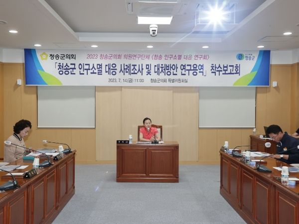 [제주교통복지신문 김강석 기자] 청송군의회 의원연구단체 '인구소멸대응연구회'는 7월14일 의회 특별위원회실에서 ‘청송군 인구소멸 대응 사례조사 및 대처방안 연구’를 주제로 착수보고회를 가졌다.