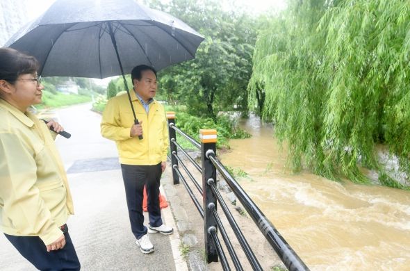 [제주교통복지신문 김강석 기자] 이권재 오산시장이 13일 수도권 집중호우에 대비해 신장빗물펌프장, 대영주택(궐동), 오산대학교 앞 징검다리 등 집중침수 지역 등을 찾아 수해 대비 상황을 점검했다.