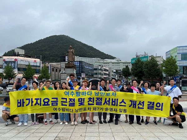 [제주교통복지신문 김강석 기자] 여수시낭만포차운영협의회가 14일 오후 여수해양공원~낭만포차거리 일원에서 ‘바가지요금 근절․친절서비스 개선’ 캠페인을 전개하며 정직하고 친절한 낭만포차 운영을 다짐했다.