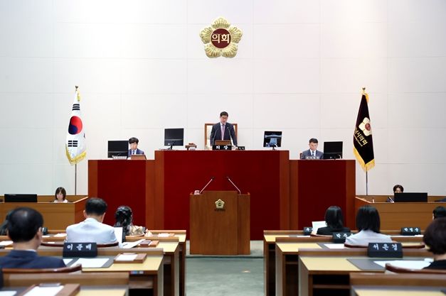 박광순 의장은 개회사를 통해 “7월 8일 제5회 대한민국 지방의회· 지방행정 박람회에서 성남시의회가 기초의회 부문 대상을 받았다”며, “영광스럽게도 대상을 수상한 만큼 앞으로도 의원 모두 힘을 합쳐 기본과 원칙에 충실한 의회를 목표로 오직 시민만을 위해 적극적인 의정활동을 해나가면 좋겠다”고 말했다. 이어서 “집행부에서는 장마철 사고 대비에 철저를 기해주시기 바라며, 특히 작년 수해를 입은 지역을 포함하여 현장 전반을 꼼꼼히 점검해 선제적 대비 태세를 강화하여 강우로 인한 인명피해나 사고가 발생하지 않도록 노력해달라”고 말했다.