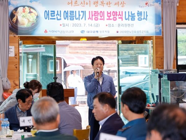 [제주교통복지신문 김강석 기자] DGB 대구은행 성주지점은 7월 14일 (사)대한노인회 성주군지회 임원 및 노인회 직원 60여명을 모시고 사랑의 복(福) 삼계탕 나눔 행사를 개최했다.