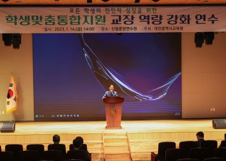 [제주교통복지신문 김강석 기자] 대전광역시교육청은 7. 14, 신협중앙연수원에서 교육장과 초․중 교장, 대전광역시교육청 유관부서 업무담당자 등 270여 명을 대상으로 학생맞춤통합지원 교장 역량 강화 연수를 실시했다고 밝혔다.
