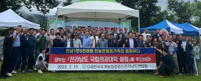 이날 강도용 한국후계농업경영인 전남연합회장, 김향숙 한국여성농업인 전남연합회장과 농업인 단체 회원 200여 명은 ‘전라남도 국립의과대학 설립 촉구 성명서’를 통해 전남지역 공공의료 시설 확충의 필요성을 강력히 주장했다.