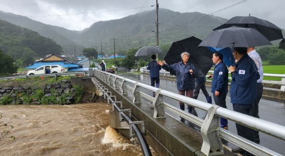 이에 박 군수는 내산면 지티리를 시작으로 은산면 회곡리, 거전리 등 일대를 순차적으로 돌며 피해상황을 직접 살폈다. 주택침수, 농경지 침수, 제방유실, 산사태 피해 등에 대한 응급복구 장비 임차 선조치와 이재민 구호물품 지원 등을 현장에서 즉각 지시했다.