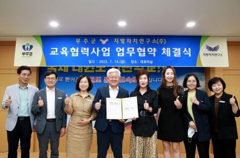 [제주교통복지신문 김강석 기자] 무주군이 지방자치연구소(주)와 교육협력 사업에 관한 업무협약을 체결했다. 14일 무주군청 대회의실에서 진행된 협약은 공무원 역량강화와 지역의 경쟁력 확보를 위해 추진된 것으로, 이 자리에서 황인홍 무주군수와 지방자치연구소(주) 이영애 대표는 무주군 경쟁력 확보를 위한 교육사업 추진, 그리고 두 기관 발전을 위해 지속적으로 협력해 나가기로 뜻을 모았다.