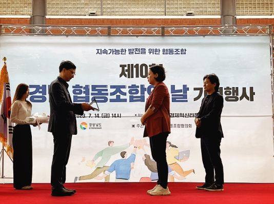 기념식에서는 그동안 협동조합 활성화와 지역사회 발전에 공헌한 사회적협동조합 한들산들(창원)과 남해상주동고동락협동조합(남해)이 도지사 표창을 받았다.