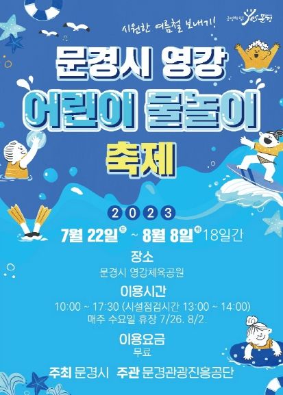 [제주교통복지신문 김강석 기자] 문경시는 오는 7월 22일부터 8월 8일까지 영강체육공원 야외공연장에서 '영강 어린이 물놀이 축제'를 개최한다.